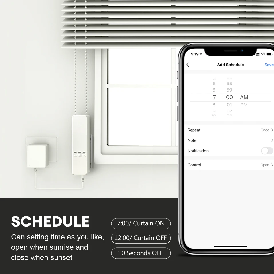 ◆ Save Time Energy & Money: Compatible with any window shade/blind that has a cord loop or beaded chain (plastic or metal). With a 5-minute DIY installation process at half the price, makes this smart blinds the best choice for window blind/shade automation