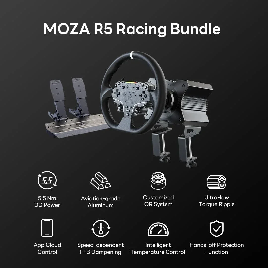 All-in-One PC Gaming Racing Simulator 3PCS Bundle: 5.5Nm Direct Drive Wheel Base, 11-inch Racing Wheel, Anti-Slip Pedals and a Desk Clamp, Cloud-based App Control