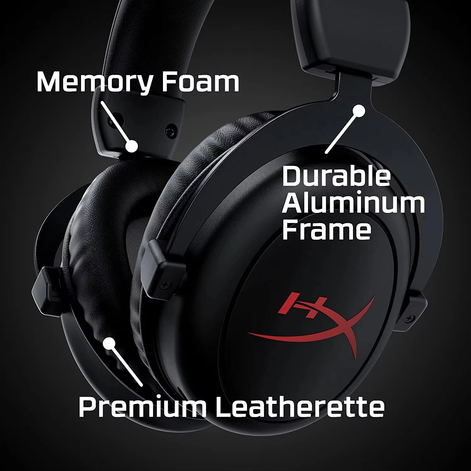 Stay in the zone with Signature HyperX comfort: Plush memory foam earpads swathed in premium leatherette help deliver a comfortable listening experience. Keep focused on your gaming, classwork, or tasks with the comfortable Cloud II Core Wireless.